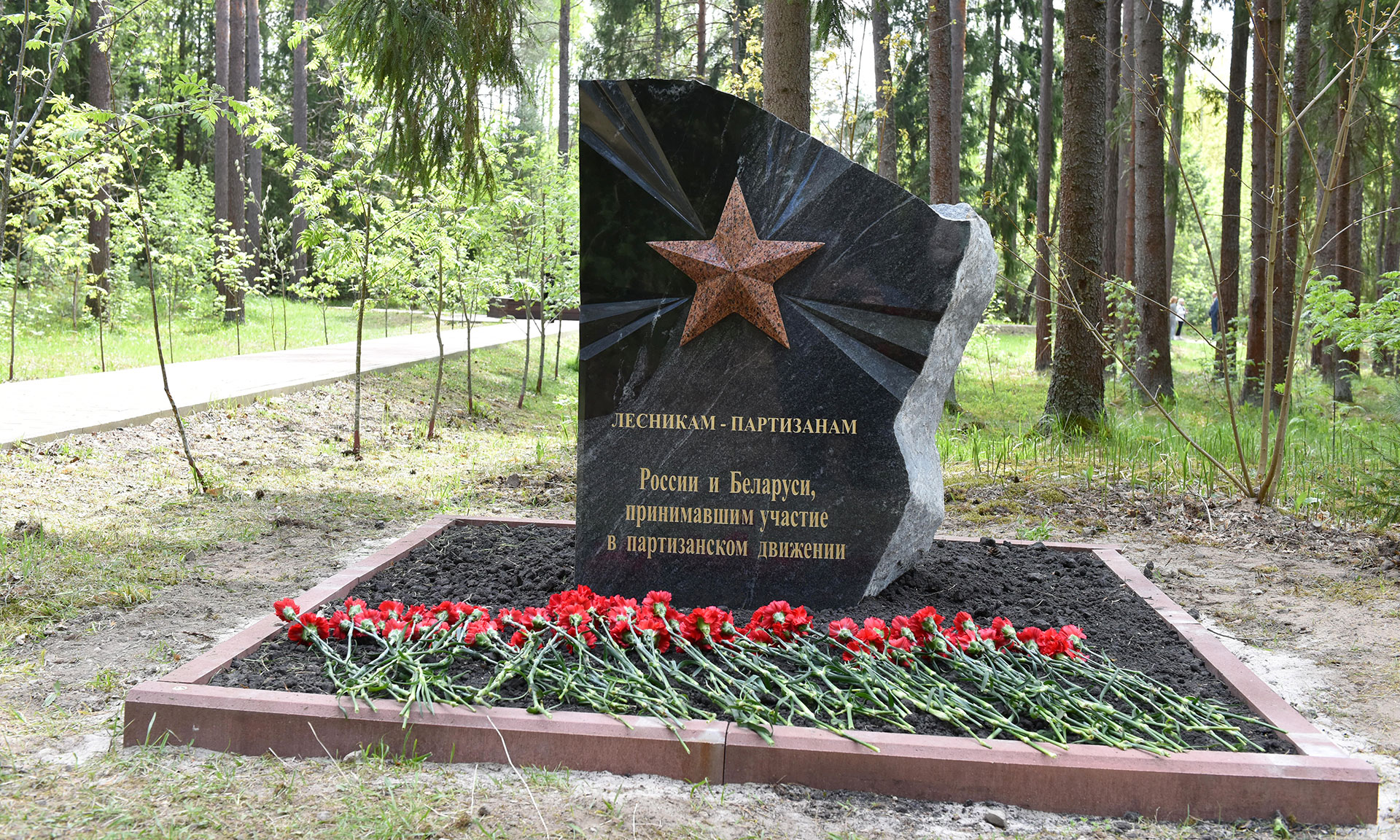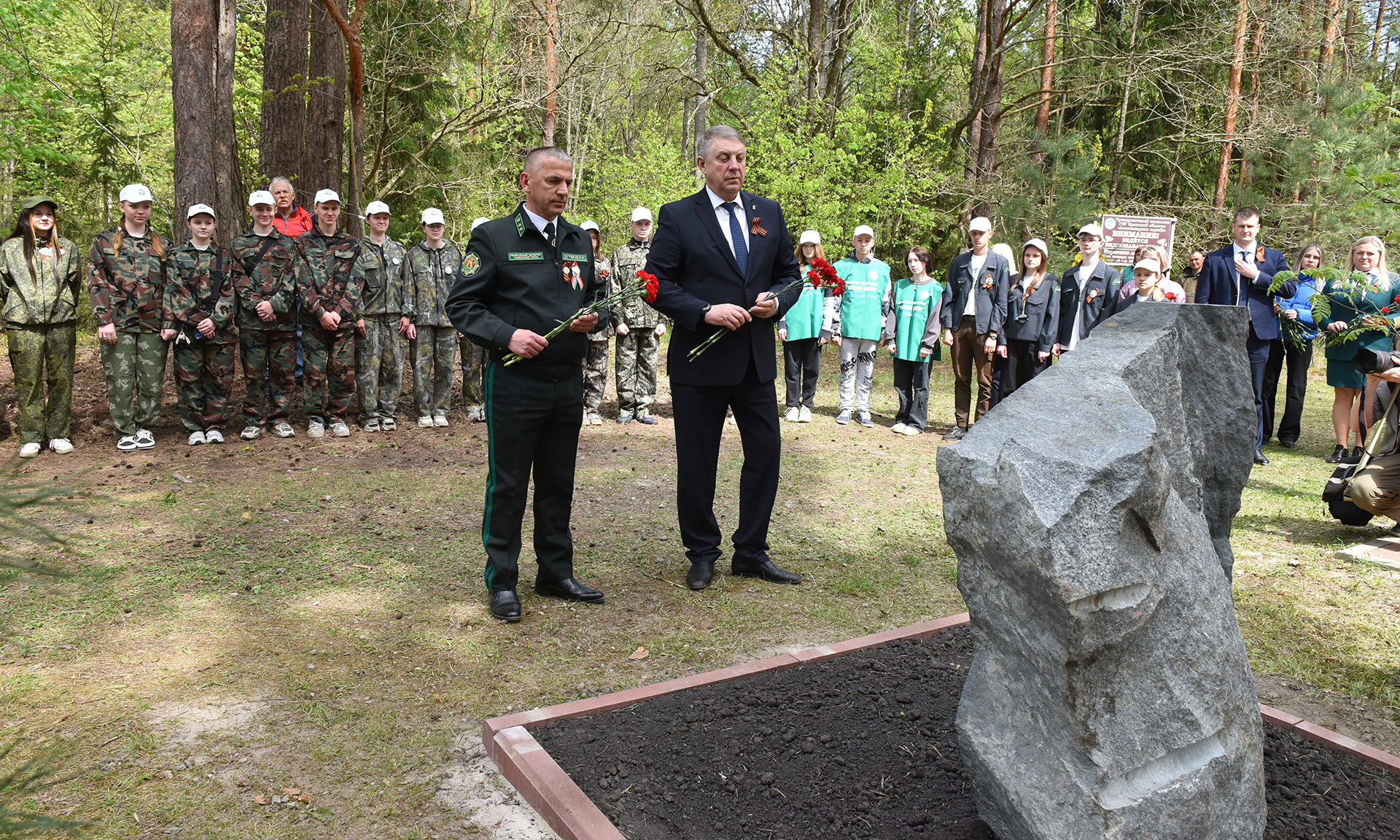В преддверии празднования 80-й годовщины Победы в Великой Отечественной войне почетные гости открыли памятный знак «Лесникам-партизанам России и Беларуси, принимавшим участие в партизанском движении».