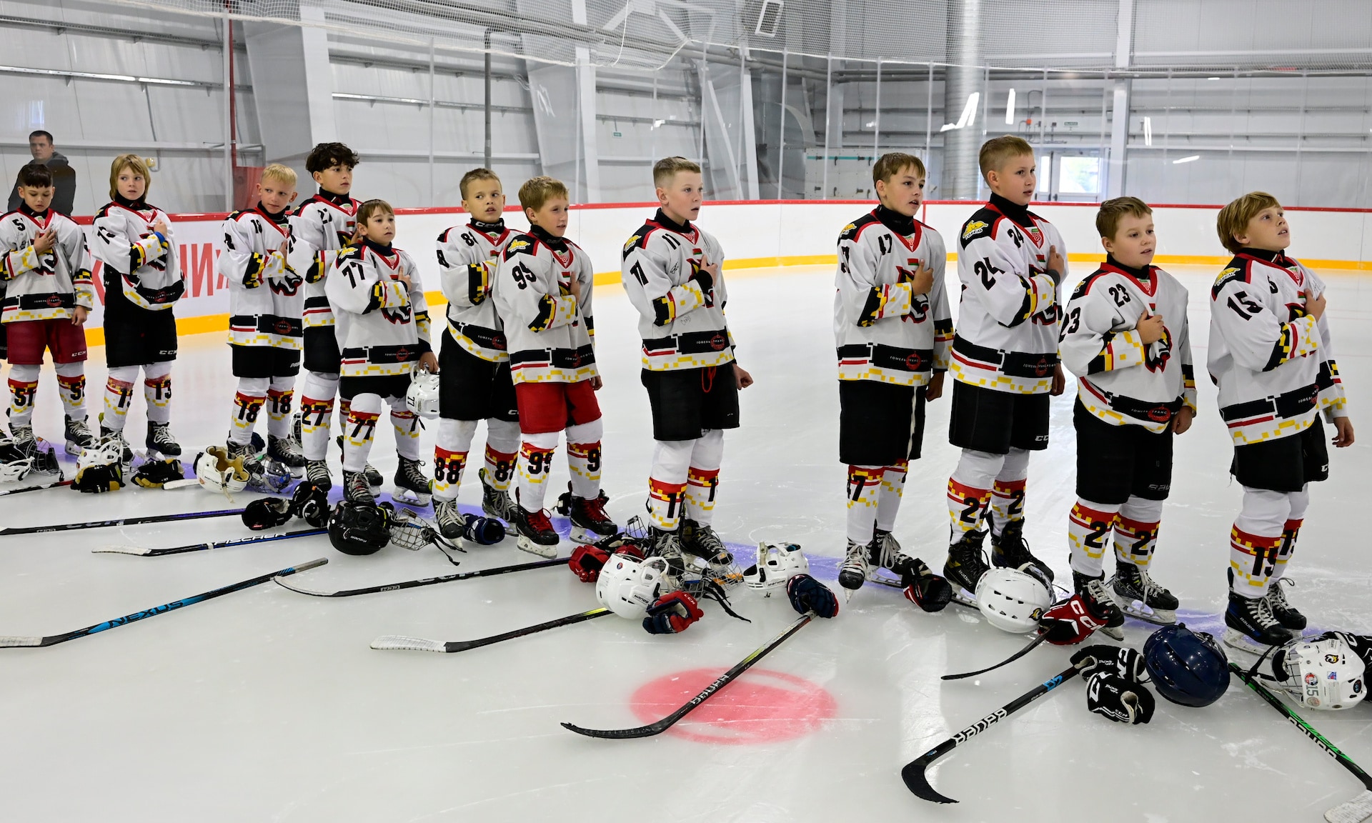 Этот ледовый дворец у нас уже 14-й, и практически готов 15-й в Глинищеве, где уже заливают лед. Пятнадцать ледовых дворцов по всей области, которые позволят нам готовить будущих Харламовых, Петровых, Михайловых, и, я уверен, через 10–15 лет мы увидим нынешних начинающих хоккеистов уже на больших ледовых аренах!