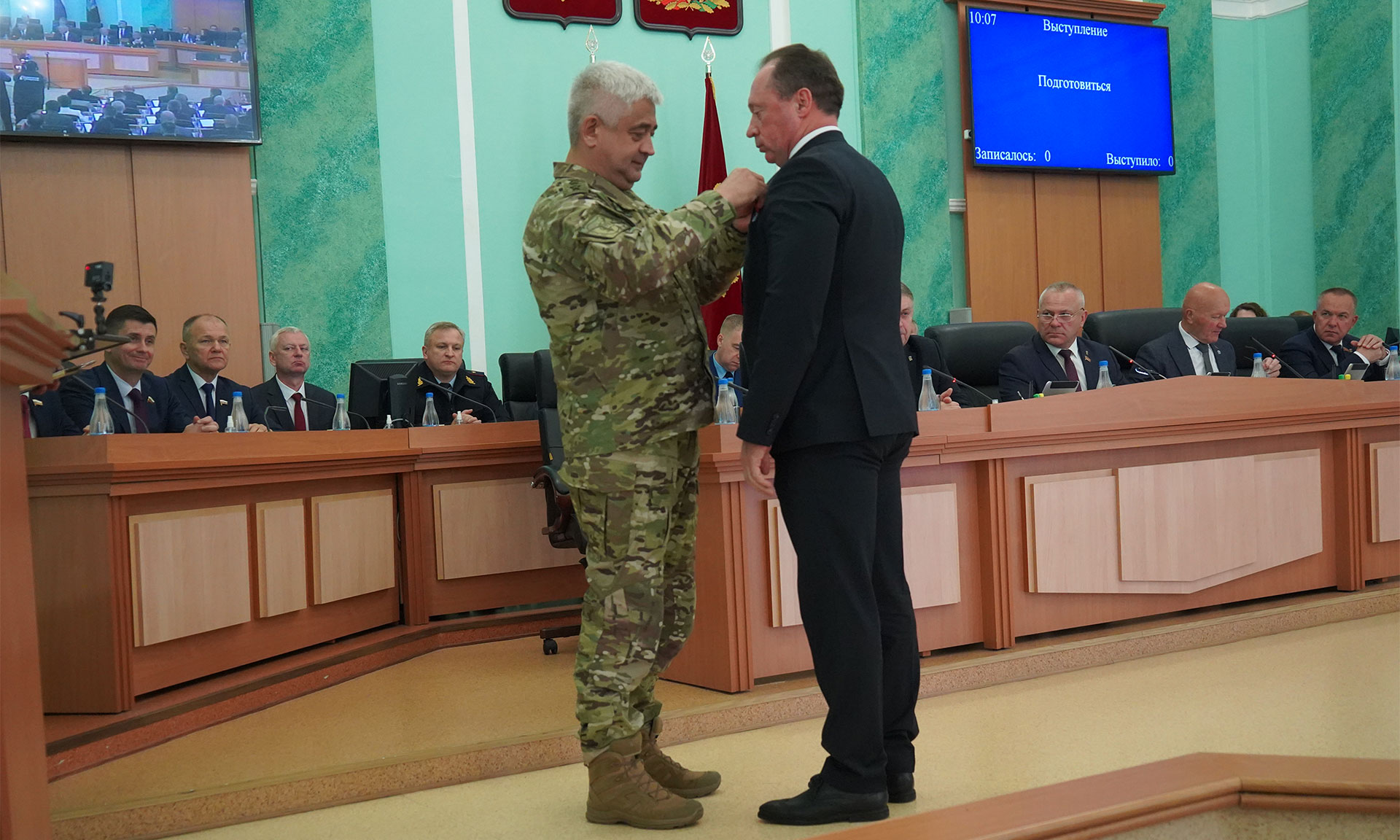 Губернатор Брянской области Александр Богомаз поздравил командира добровольческой бригады «БАРС-Брянск» Сергея Антошина с высокой государственной наградой, которую ему вручил командующий Ленинградским военным округом и объединенной группировкой «Север» Евгений Никифоров.