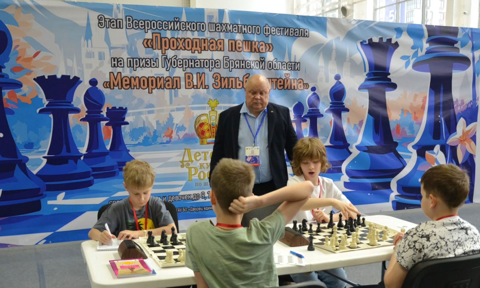 В эти дни проходят и детские состязания — этап Всероссийского шахматного фестиваля «Проходная пешка», этапы «Рапид и блиц Гран-при России» на призы Губернатора Брянской области «Мемориал В. И. Зильберштейна».