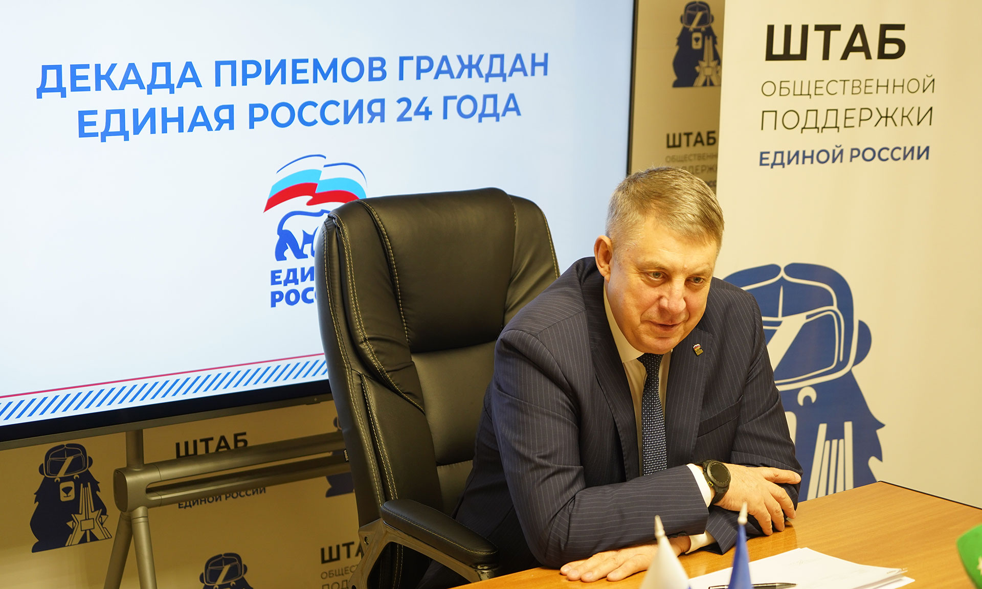 2 декабря Губернатор Брянской области, секретарь Брянского регионального отделения Всероссийской политической партии «Единая Россия» Александр Богомаз провел прием граждан в штабе общественной поддержки Всероссийской политической партии «Единая Россия».