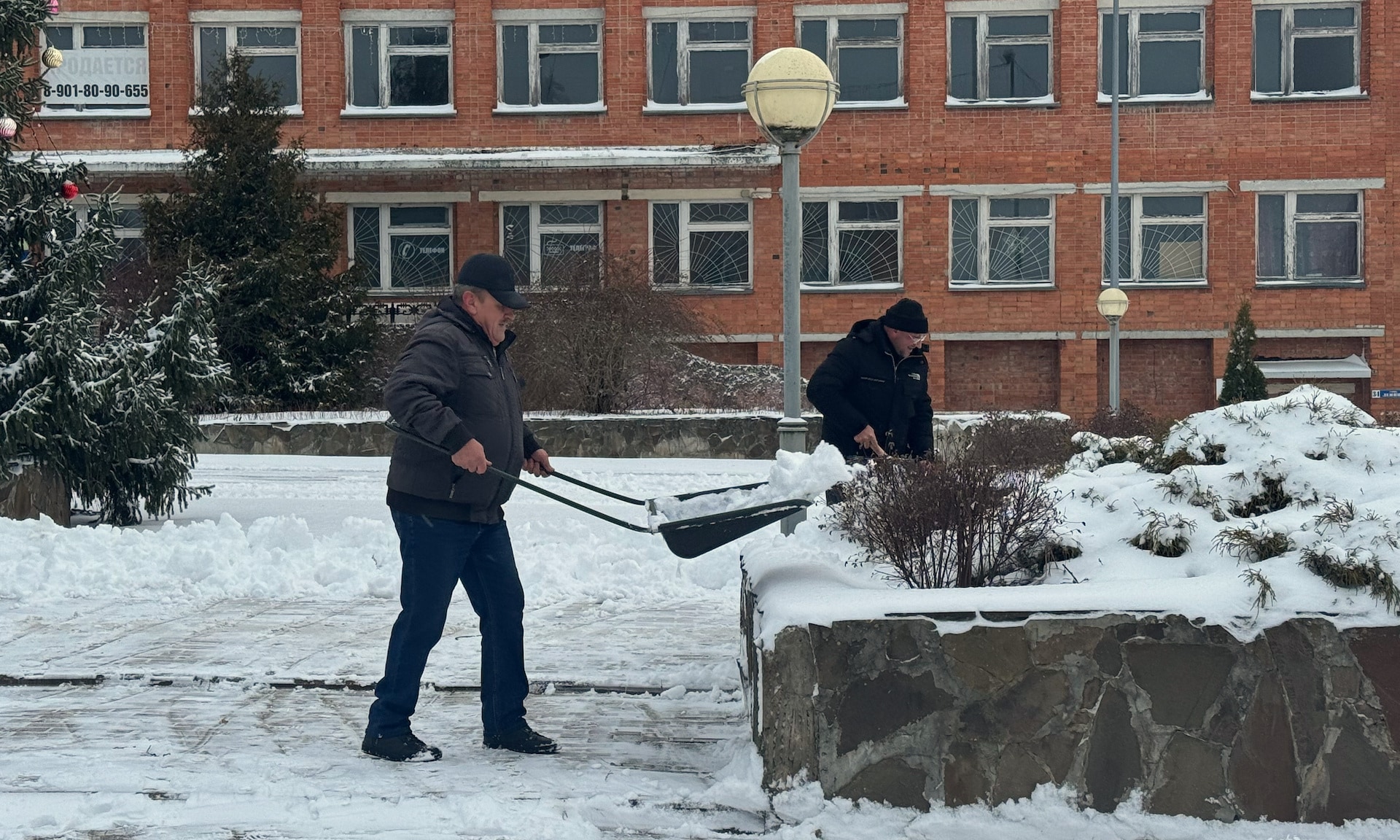 Также убираются пешеходные зоны и дворы домов. Особое внимание уделяется очистке тротуаров и остановок общественного транспорта, который продолжает курсировать по расписанию даже в сложных погодных условиях.