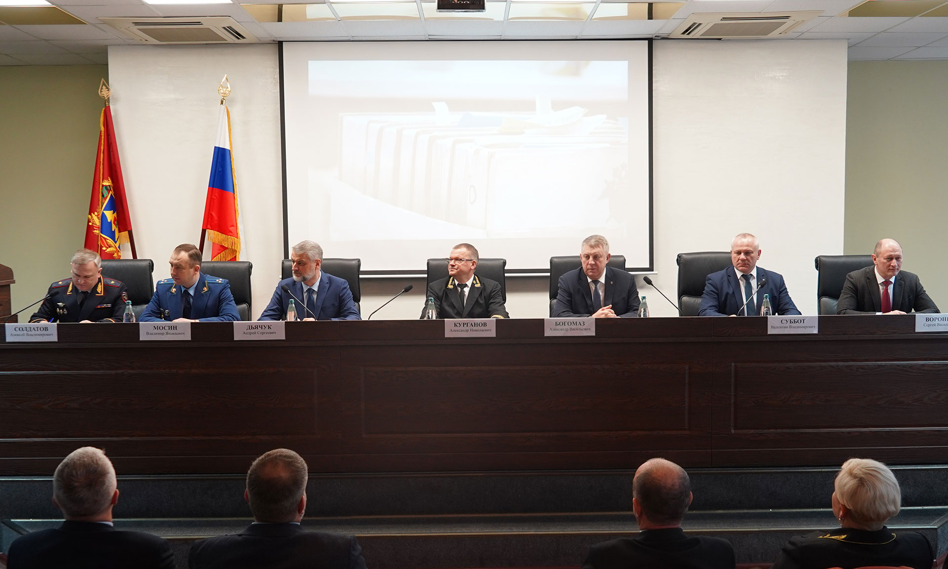 В совещании приняли участие Губернатор Александр Богомаз, председатель Брянского областного суда Александр Курганов, председатель Брянской областной Думы Валентин Суббот, главный федеральный инспектор по Брянской области Андрей Дьячук, прокурор Брянской области Владимир Мосин, начальник управления ФСБ России по Брянской области Сергей Воронин, начальник УМВД России по Брянской области Алексей Солдатов, судьи Брянского областного суда, председатели и судьи судов общей юрисдикции Брянской области, мировые судьи.